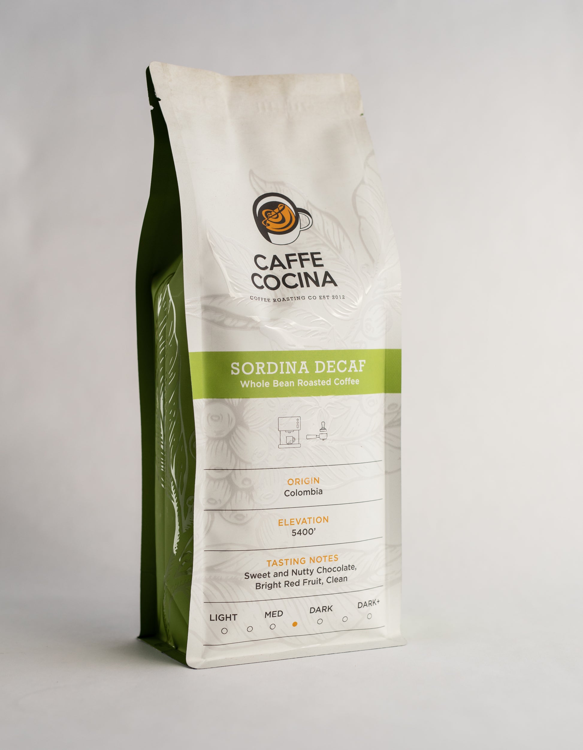 In this delicately crafted decaf Columbian coffee, we gently ease sweet and tasty notes to the surface leaving a huge and surprising flavor to be discovered. Exclusively using Swiss Water Process, we believe decaffeinated coffee just wants to be loved. It’s delicate, and it needs to be wooed. Sordina is everything a decaf drinker is looking for and more.